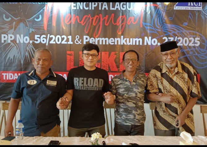 Dalam pertemuan yang digelar di kawasan Pasar Minggu, Jakarta Selaan itu, dicapai kesepakatan untuk menggugat pencopotan Peraturan Pemerintah PP56 Tahun 2013 dan Peraturan Meneri (Permen) No.27 Tahun 2025, yang menjadi dasar hukum LMKN.