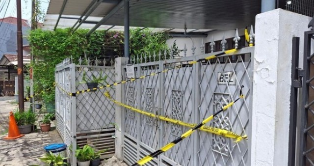 Selain menyita barang bukti, polisi juga menemukan banyak bercak darah tercecer sejumlah sudut ruangan. Bercak darah bahkan ditemukan di depan pagar rumah tetangganya.