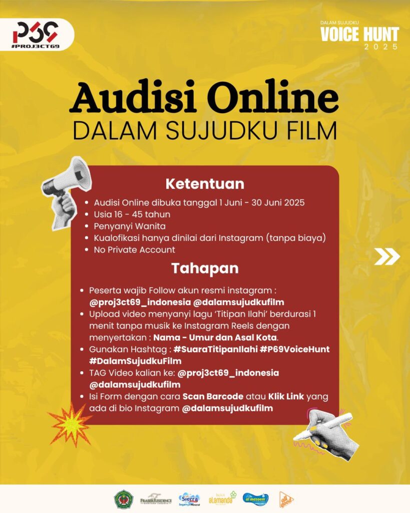 Donny menjelaskan untuk mengikuti proses Voice Hunt ini tahap awalnya adalah melakukan follow terhadap akun resmi Instagram @proj3ct69_indonesia @dalamsujudkufilm.