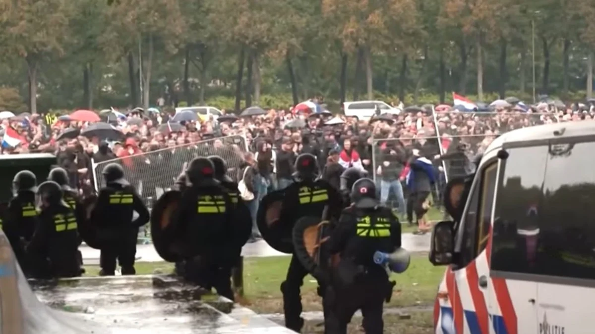 Rekaman yang ditayangkan penyiar publik NOS menunjukkan massa melempar batu dan botol ke arah polisi. Banyak demonstran terlihat mengibarkan bendera Belanda dan bendera kelompok sayap kanan.