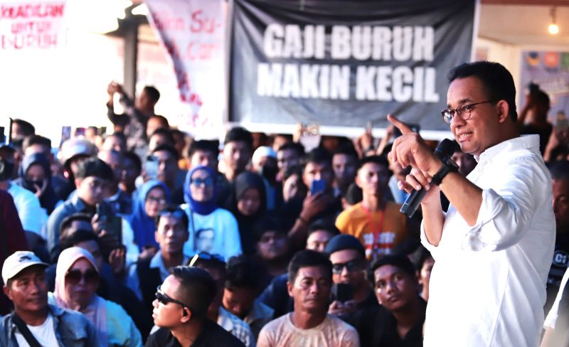 KENDARI, AKURATNEWS.co –Tiba di Kendari, capres nomor urut satu, Anies Baswedan mendengar keluhan para buruh, nelayan dan petani di Wakop Bakrie, Kendari, Sulawesi Tenggara, Selasa (9/1).