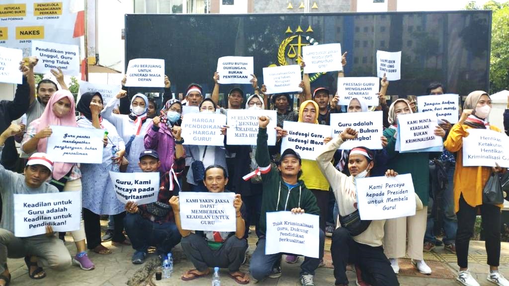 Aksi damai ini berkaitan dengan dugaan kriminalisasi terhadap S, seorang guru yang dilaporkan orang tua murid yang anaknya diajar olehnya. Massa aksi damai ini mengecam tindakan sewenang-wenang yang diduga dilakukan aparat penegak hukum dalam kasus ini dan mengakibatkan dugaan kriminalisasi serius terhadap seorang guru yang merupakan elemen penting dalam pendidikan generasi penerus bangsa.