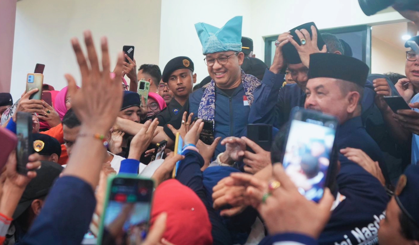 Ratusan simpatisan partai dan relawan berbagai simpul relawan se-Sumbar, serta masyarakat umum lainnya pun berebutan bersalaman dan berfoto. Mereka juga menyerbu ke kendaraan yang ditumpangi Anies.