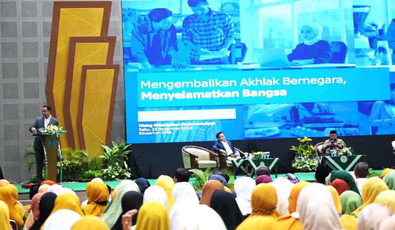 SOLO, AKURATNEWS.co – Dialog Terbuka Muhammadiyah Bersama Calon Pemimpin Bangsa yang berlangsung di Edutorium Universitas Muhammadiyah Surakarta (UMS), Rabu (22/11)) menghadirkan pasangan Koalisi Perubahan, Anies Baswedan dan Muhaimin Iskandar (AMIN).