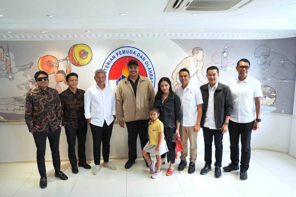 JAKARTA, AKURATNEWS.co – Menteri Pemuda dan Olahraga Republik Indonesia (Menpora RI) Dito Ariotedjo bersama Wakil Menpora Taufik Hidayat menerima audiensi dari The Dudas-1, yang beranggotakan Gading Marten, Desta Mahendra, Ariel NOAH, serta Utusan Khusus Presiden Bidang Pembinaan Generasi Muda dan Pekerja Seni, Raffi Ahmad, yang hadir bersama sang istri, Nagita Slavina.