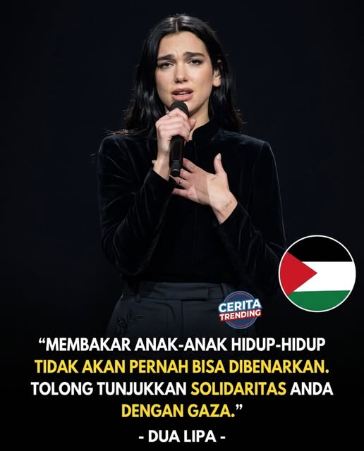 Salah satu penyanyi yang mengecam kebiadaban Israel di Palestina adalah DuaLipa. Penyanyi dan penulis lagu berkebngsaan Inggris-Albania itu mengutuk keras kebiadaban Israel di Palestina.