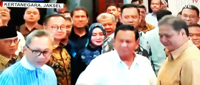 Selain Prabowo, hadir dalam pertemuan Ketua Umum Partai Golkar Airlangga Hartarto, Ketua Umum PAN Zulkifli Hasan, Ketua Umum Partai Demokrat Agus Harimurti Yudhoyono, hingga Ketua Umum PBB Yusril Ihza Mahendra dengan didampingi para sekretaris jenderal dan pengurus teras masing-masing partai. Sedangkan Gibran tak hadir dalam pertemuan tersebut.