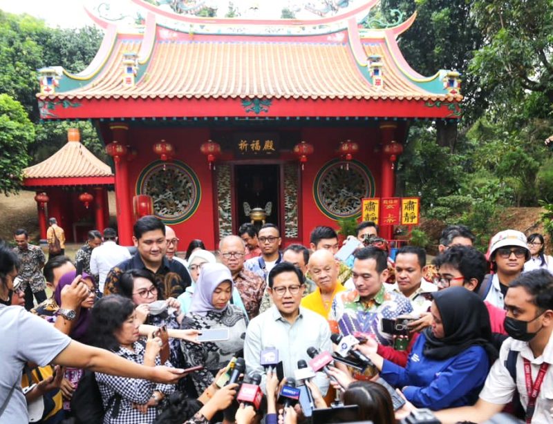 JAKARTA, AKURATNEWS – Ketua Umum Partai Kebangkitan Bangsa (PKB), Muhaimin Iskandar coba menghadirkan pesan perdamaian dan keberagaman saat mengikuti pertemuan silaturahim lintas agama bertema ‘Aksi Melayani Merekatkan Indonesia di Tengah Perbedaan’ di Klenteng Kong Miao TMII, Jakarta Timur, Kamis (14/9).
