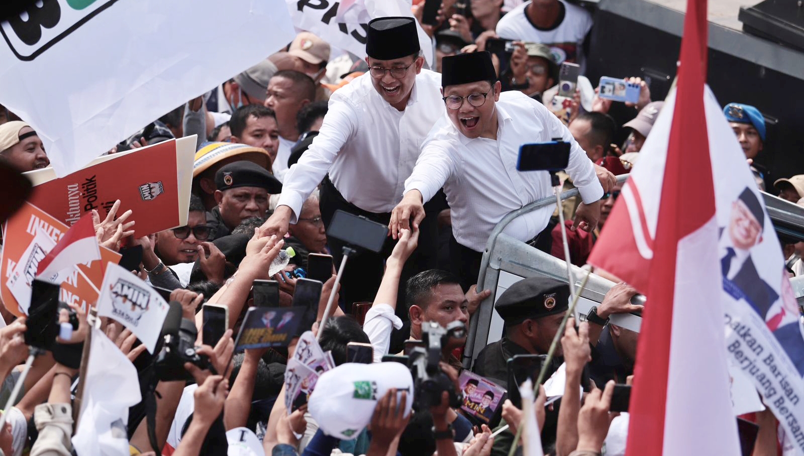 Terlihat antusiasme lautan massa dalam mengantarkan AMIN untuk mengikuti kontestasi Pilpres 2024.