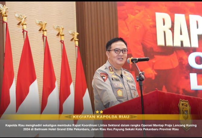RIAU, AKURATNEWS.co – Dalam rangka menjaga kondusifitas Pilkada Riau, Polda Riau menggelar Rapat Koordinasi Lintas Sektoral Operasi Mantap Praja Lancang Kuning 2024 di Ballroom Hotel Grand Elite Pekanbaru, Senin (19/8).