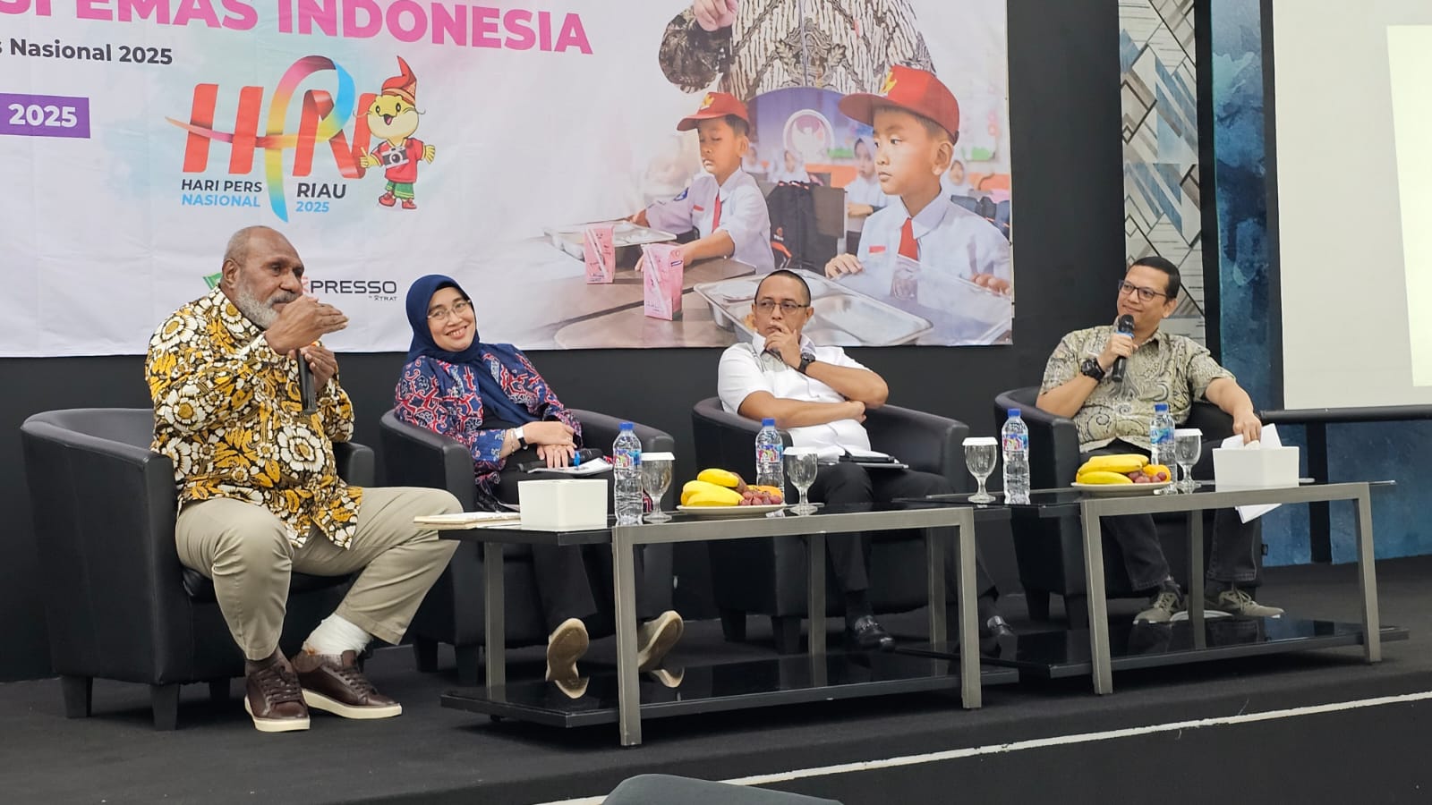 Selain itu juga hadir sebagai narasumber yaitu pegiat dapur umum masyarakat Papua Selatan yang juga mantan Bupati Merauke dua periode, Johanes Gluba Gebze.