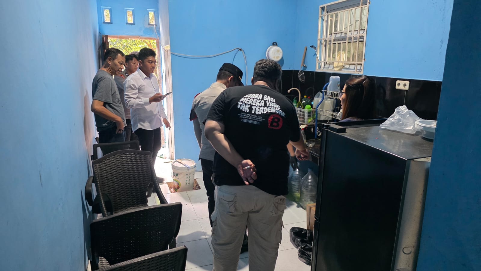 “Saat masuk kantor PWI Babel kaget melihat pintu depan diikat tali plastik dari dalam lalu saya cek kebelakang pintu terbuka dalan kondisi dijebol, sejumlah barang sudah rusak. Saat saya cek sejumlah barang juga sudah hilang, dan disalah satu sisi dinding tertulis ancaman “YO BEGASAK,” kata Fakhrudiin Halim