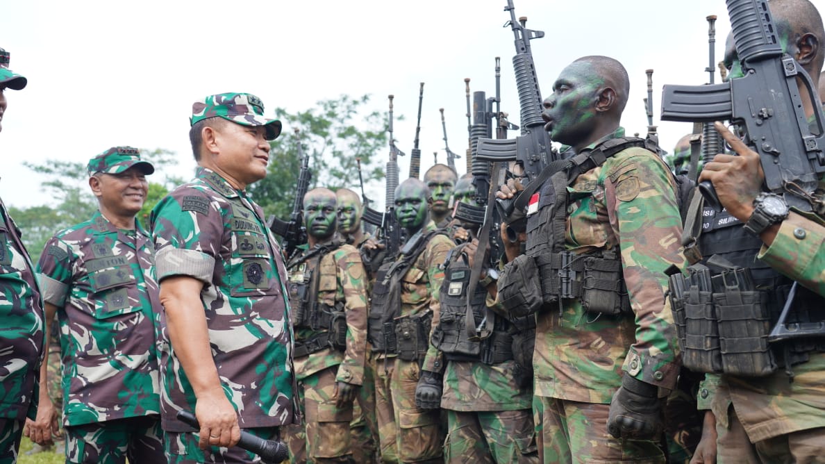 Hal tersebut ditegaskan Kepala Staf Angkatan Darat (Kasad) Jenderal TNI Dr. Dudung Abdurachman, saat meninjau latihan Pra Tugas Yonif Raider 300/Braja Wijaya dan Yonif 310/Kidang Kencana, yang dalam waktu dekat akan melaksanakan tugas operasi di Papua di Daerah Latihan Desa Cibokor, Kecamatan Cibeber, Kabuputen Cianjur, Jawa Barat, Kamis (11/5/2023).
