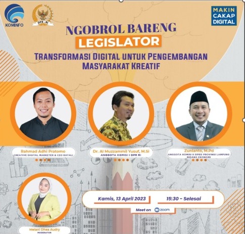 JAKARTA, AKURATNEWS – Kementerian Komunikasi dan Informatika (Kementerian Kominfo) RI bersama Dewan Perwakilan Rakyat (DPR) RI telah menyelenggarakan seminar online dengan tema yang diangkat Webinar: “Transformasi Digital Untuk Pengembangan Masyarakat Kreatif”. Seminar ini diselenggarakan pada hari Kamis, 13 April 2023 melalui platform zoom meeting.