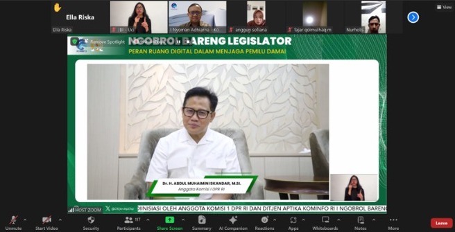 JAKARTA, AKURATNEWS.co Kementerian Komunikasi dan Informatika (Kementerian Kominfo) bersama Dewan Perwakilan Rakyat (DPR) telah menyelenggarakan seminar online yakni Ngobrol Bareng Legislator dengan mengusung tema: “Peran Ruang Digital dalam Menjaga Pemilu Damai”, yang diselenggarakan pada hari Selasa, 30 Januari 2024 melalui platform zoom meeting.