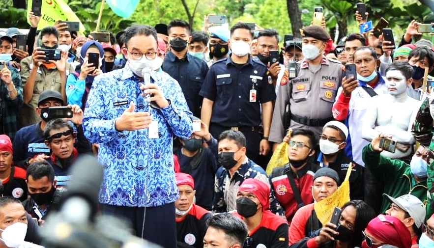“Anies adalah satu-satunya kepala daerah yangmau memperjuangkan kenaikan UMP buruh di luar skema nasioanal,” katanya.