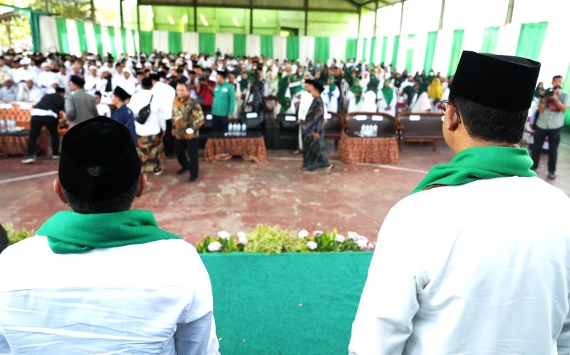 “Kami hadir untuk memohon doa. Mengemban misi yang akan membawa kemaslahatan bagi semuanya. Kami yakin insya Allah jika semua kyai mendoakan maka dwi tunggal ini akan meneruskan perjuangan orang tua kami dulu,” kata Anies.