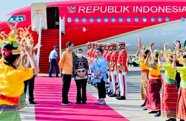 LABUAN BAJO, AKURATNEWS – Presiden RI Joko Widodo (Jokowi) dan Ibu Iriana Joko Widodo tiba di Bandar Udara (Bandara) Internasional Komodo, Manggarai Barat, Nusa Tenggara Timur (NTT), Minggu (7/5/2023). Pesawat kepresidenan Indonesia-1 yang membawa keduanya mendarat di Bandara Komodo sekitar pukul 15.30 WITA.