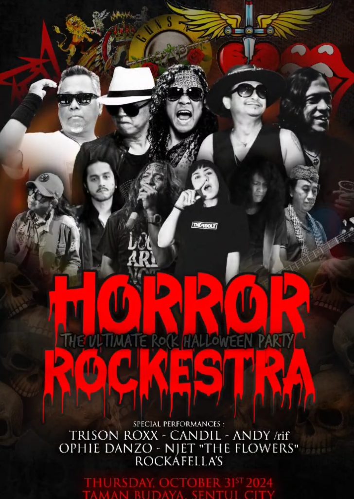 Mengusung tema horor, ‘Horror Rockestra’ akan menghadirkan lima vokalis rock ternama Indonesia, yakni Andy /rif, Trison Roxx, Candil, Ophie Danzo, dan Njet The Flowers.