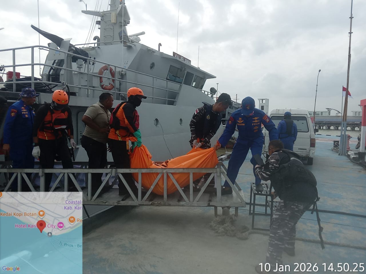 BATAM, AKURATNEWS.co – Dengan semangat pantang menyerah dan dedikasi tinggi dalam misi kemanusiaan, unsur SAR TNI AL Lanal Tbk dibawah jajaran Kodaeral IV bersama tim SAR gabungan berhasil menemukan korban kecelakaan laut tenggelamnya speedboat jenis Selodang di Perairan Tanjung Rambut, Kabupaten Karimun di hari ketiga pelaksanaan operasi SAR, Sabtu (10/1).