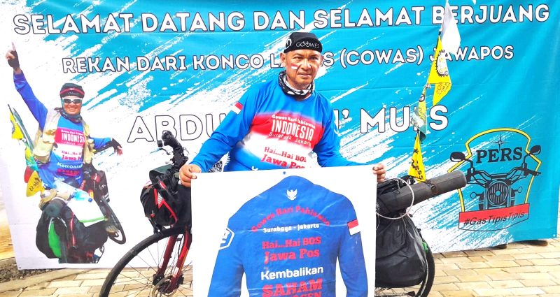 JAKARTA, AKURATNEWS.co – Guna menuntut dana tunjangan hari tua yang diabaikan manajemen Jawa Pos (JP), mantan wartawan senior Jawa Pos, Abdul Muis (60) nekat bersepeda dari Surabaya ke Jakarta.