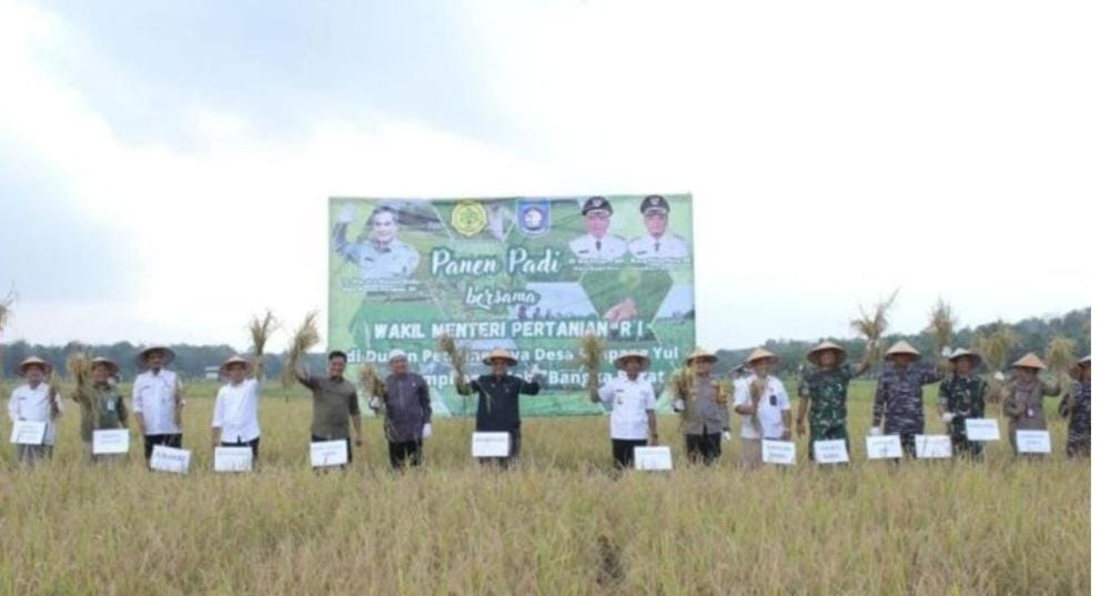 Kementerian Pertanian menyatakan El Nino belum berdampak pada produksi padi petani di Indonesia, usai melakukan kunjungan kerja menyaksikan panen padi sawah di Dusun Petaling Jaya, Kabupaten Bangka Barat, pada Jumat (4/8/ 2023).