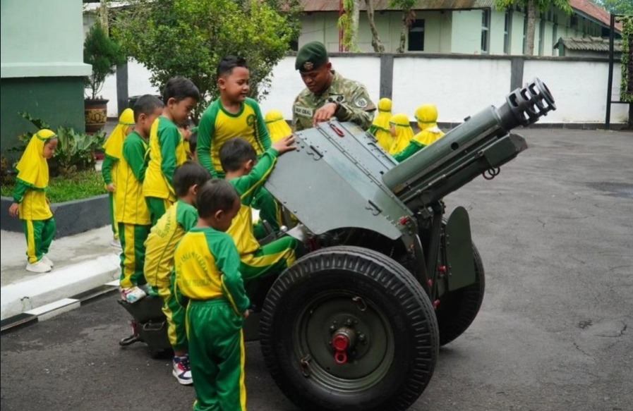 MAGELANG, AKURATNEWS,co – Dalam rangka edukasi wisata militer sebanyak 200 anak beserta Guru dari TK Islam Terpadu Al Ma’aruf Tegalrego berkunjung Ke Markas Yonarmed 11 Kostrad, kelurahan Gelangan, Kecamatan Magelang Tengah, Kota Magelang. Selasa (06/02/2024).